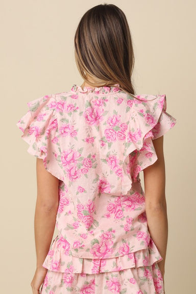 Bria Cascade Ruffle Blouse features a layered ruffle detailing along the sleeves for a soft, romantic silhouette and a lightweight textured floral ...