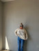 A relaxed-fit knit sweater featuring a whimsical double fish design on the front. Finished with contrast stitch detail along the neckline, cuffs, and hem.