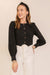 - Long sleeves with slight puff at shoulders and button cuffs