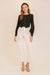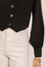 Refine your wardrobe with this button-front cropped blouse, a versatile piece that blends timeless design with a contemporary silhouette. The blouse features a round neckline and statement button closures down the front, offering classic charm with a modern edge. The structured bodice tapers gently to a pointed hemline, accentuating the waist for a flattering fit. Long, slightly puffed sleeves with tailored button cuffs add subtle volume and sophistication. Whether styled with high-rise jeans for a casual chic look or paired with tailored trousers for an elevated ensemble, this blouse brings effortless polish to any outfit.