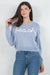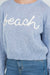 - Lightweight knit sweater with the word "beach" embroidered in soft chenille across the front