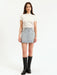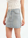 The Stash Skirt is a high rise light wash denim mini skirt with metallic studs along the side seams for a touch of cool. This statement skirt is made of 100% cotton.